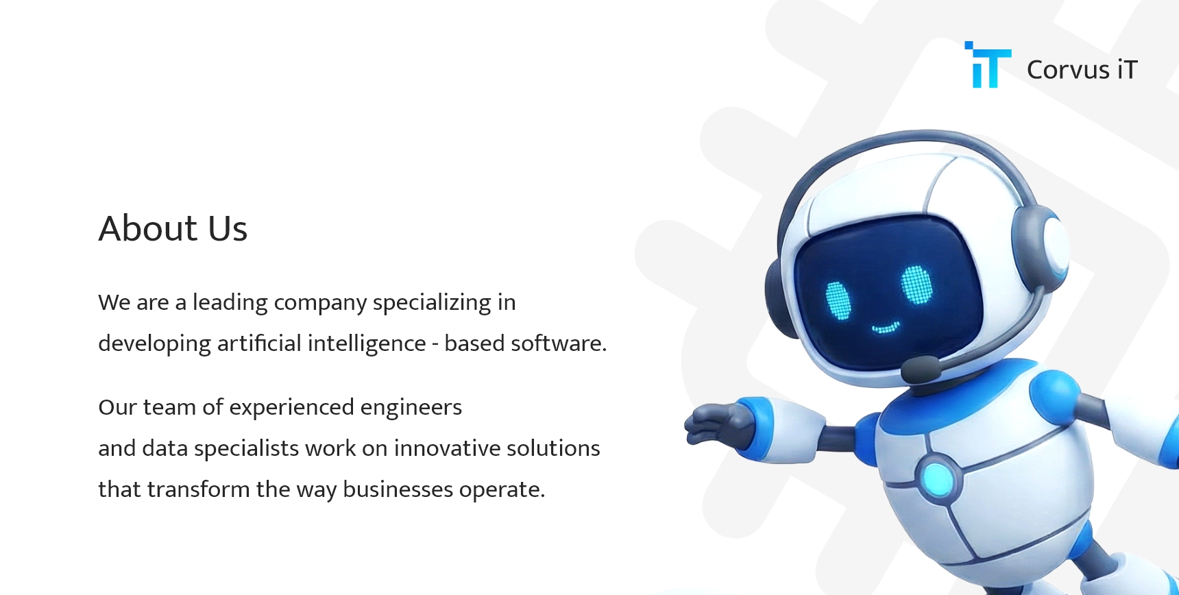 Our AI solutions have gained recognition in the market for their effectiveness and innovation. By working with us, you can be assured of receiving high-quality products and services that deliver real results. Our team of experienced engineers and data specialists work on innovative solutions that transform the way businesses operate.