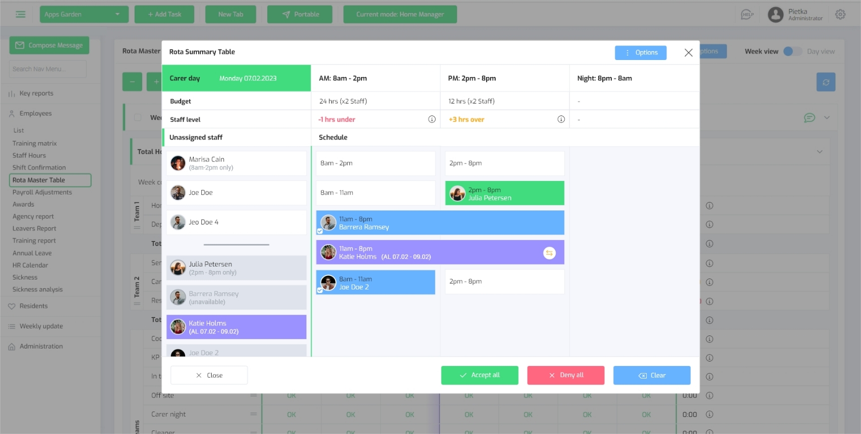 Advanced administration allowing for resource, procedure, and care home operation management.