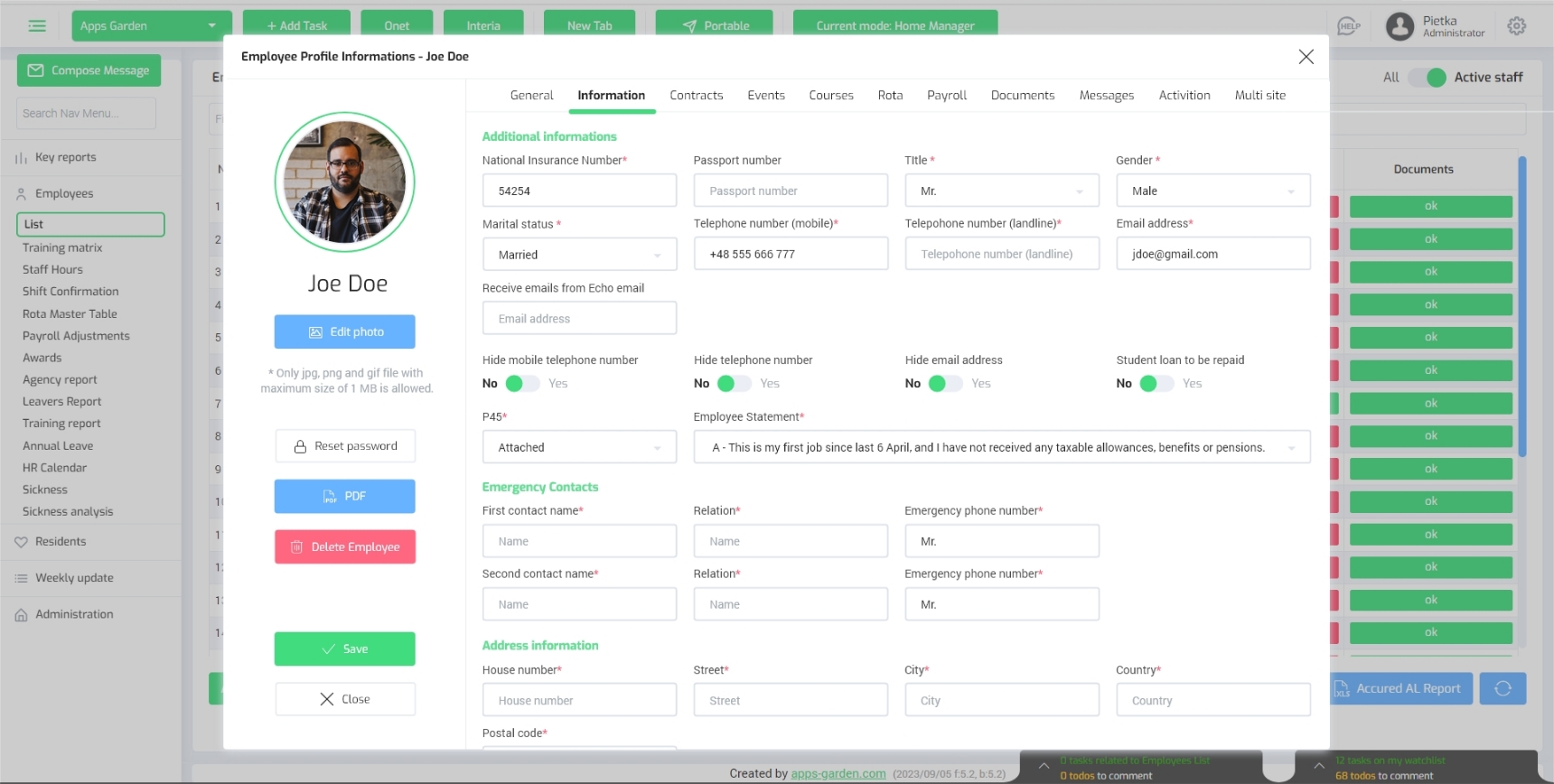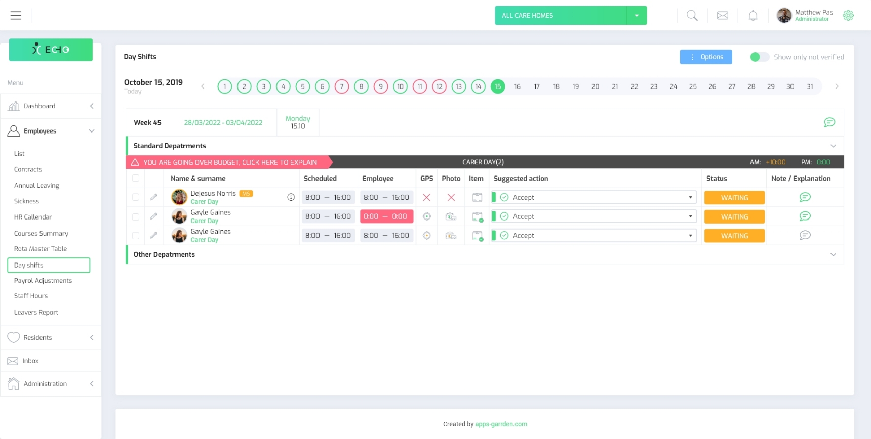 Echo is an application designed for Rose Care Group to efficiently manage employees, care homes, and their residents. It allows for organized recording and management of resident data, enabling the tracking of care history and individual needs for each resident. Employee management in care homes becomes more effective, and the system facilitates the generation of reports and analyses to monitor service quality and operational efficiency.